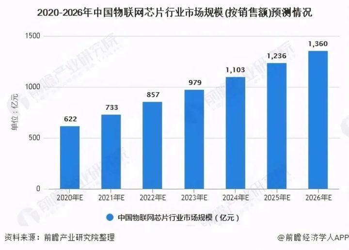 隨著傳統(tǒng)行業(yè)自動化升級,物聯(lián)網(wǎng)在垂直領(lǐng)域終端用戶的滲透率提升,物聯(lián)網(wǎng)芯片市場快速增長,前瞻產(chǎn)業(yè)研究院分析預(yù)計(jì),2022年我國物聯(lián)網(wǎng)芯片市場規(guī)??蛇_(dá)857億元人民幣,有望在2024年達(dá)到千億規(guī)模,來自Counterpoint的數(shù)據(jù)顯示,中國消耗了全球近60%的蜂窩物聯(lián)網(wǎng)芯片。