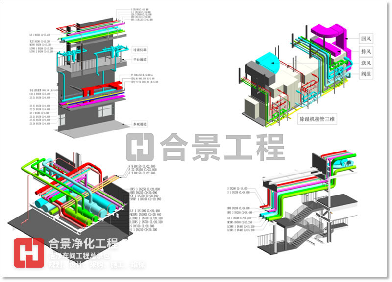 BIM 技術(shù)可應(yīng)用于工程項目規(guī)劃、設(shè)計、施工、改建、運(yùn)維等范圍,為產(chǎn)業(yè)鏈貫通、工業(yè)化建造和建筑創(chuàng)作提供技術(shù)保障。合景智慧建設(shè)(廣東)有限公司在潔凈廠房工程建設(shè)中,以BIM技術(shù)為全周期模擬,對工程全局,即潔凈環(huán)境、人流物流、暖通、電氣工程、整廠能耗、質(zhì)量、安全等方面提供方案優(yōu)化和科學(xué)決策提供依據(jù),與各專業(yè)協(xié)同工作、項目的虛擬建造和精細(xì)化管理,為工業(yè)潔凈室建設(shè)提質(zhì)增效、節(jié)能環(huán)保創(chuàng)造條件,虛實(shí)結(jié)合,賦能項目,打造交鑰匙項目。