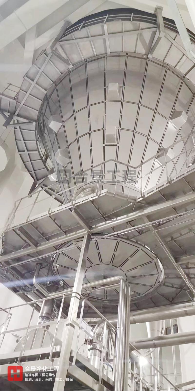 下圖為飛鶴乳業(yè)廠房?jī)艋?xiàng)目施工中效果圖: